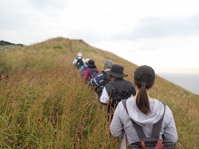 平戸の郷土料理である平戸寿司(押し寿司)を作り、それを持って上段の野へ向かいます。自然豊かな草原を講師の先生の解説を聞きながら登り、頂上付近で景色を見ながら作った平戸寿司を食べましょう。